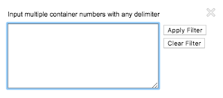 Paste or type in the container ID(s) you are searching for, then press the Enter key. You must use the full container ID: both the 4 letter prefix and the subsequent numerical string. You can use any delimiter (space, comma, pipe) in the search box for multiple containers. The query will automatically filter the 3D view to display your selected results.
