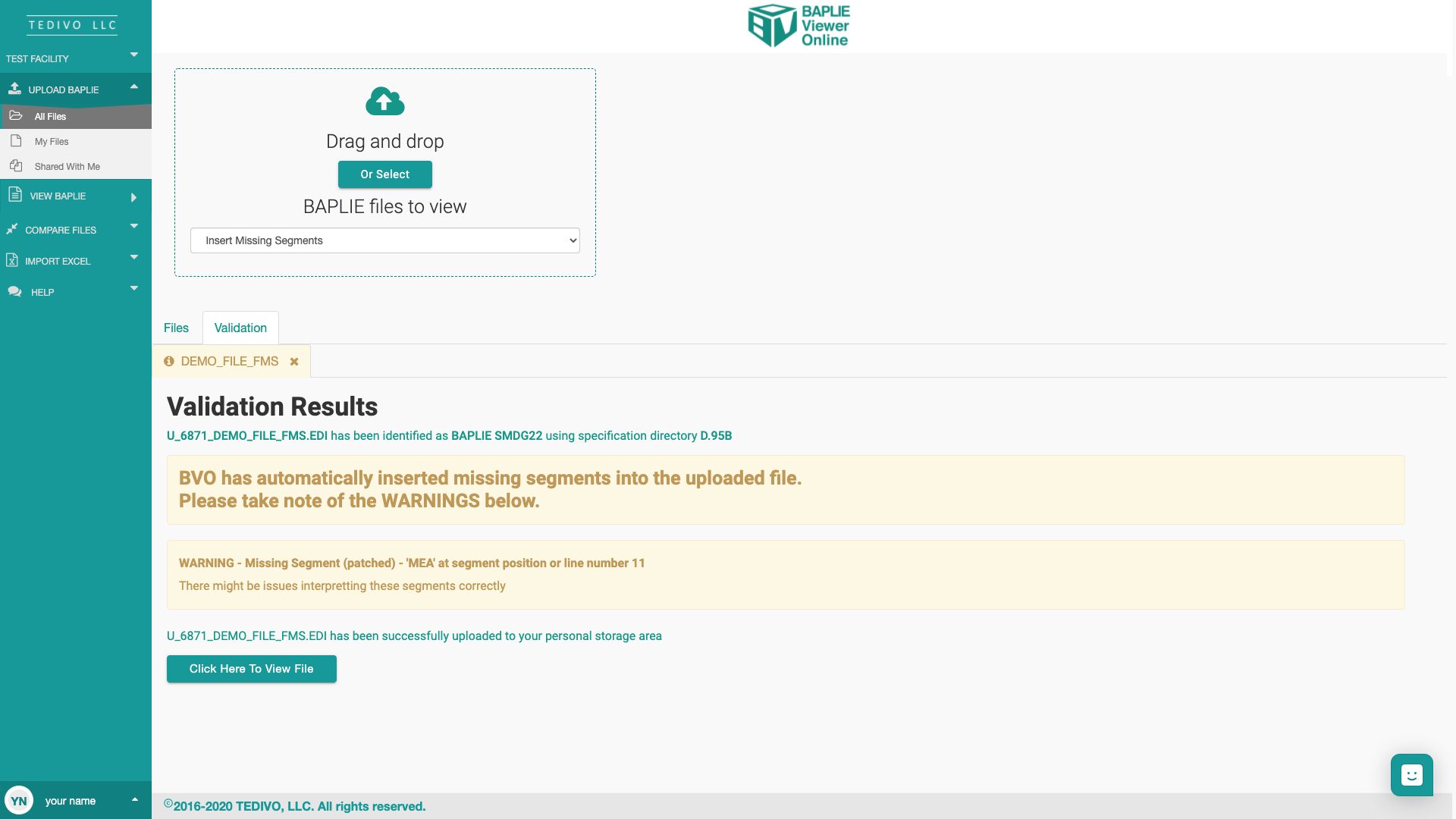Missing segments such as RFF, EQD and MEA can automatically be added with default information that allows the BAPLIE file to continue processing. The system will confirm any changes and then allow you to view the file as normal.