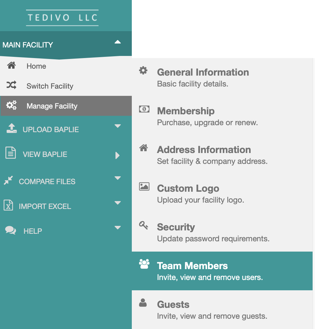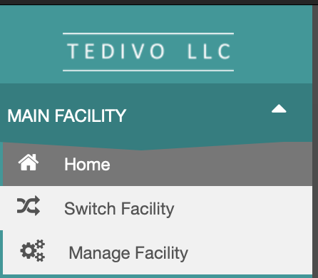 1) Login to your account and select Manage Facility from the top left of the side menu