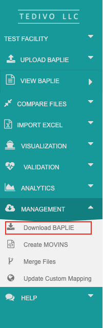 Once all desired changes have been made to a BAPLIE file, click the Management tab in the Function Menu on the left side of the screen and then select the Download BAPLIE option.