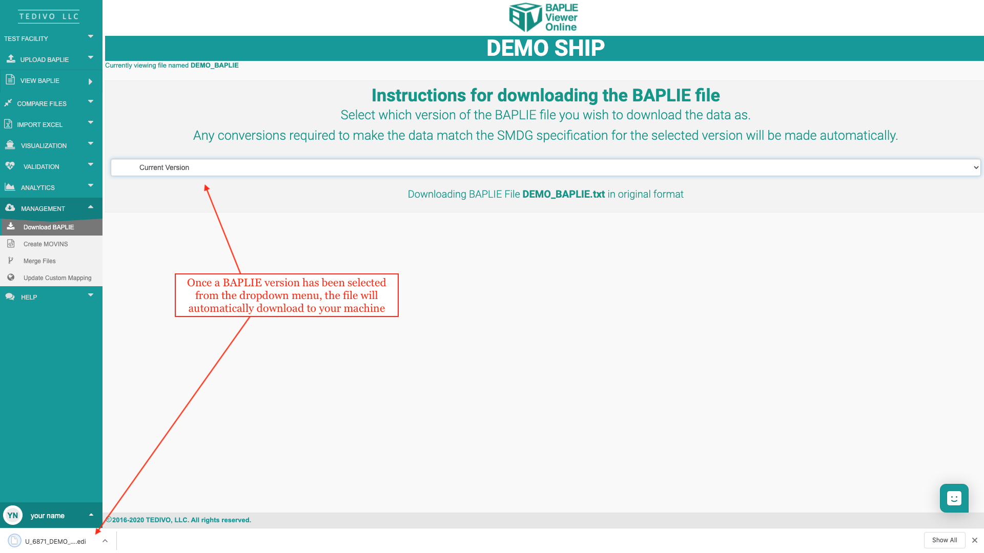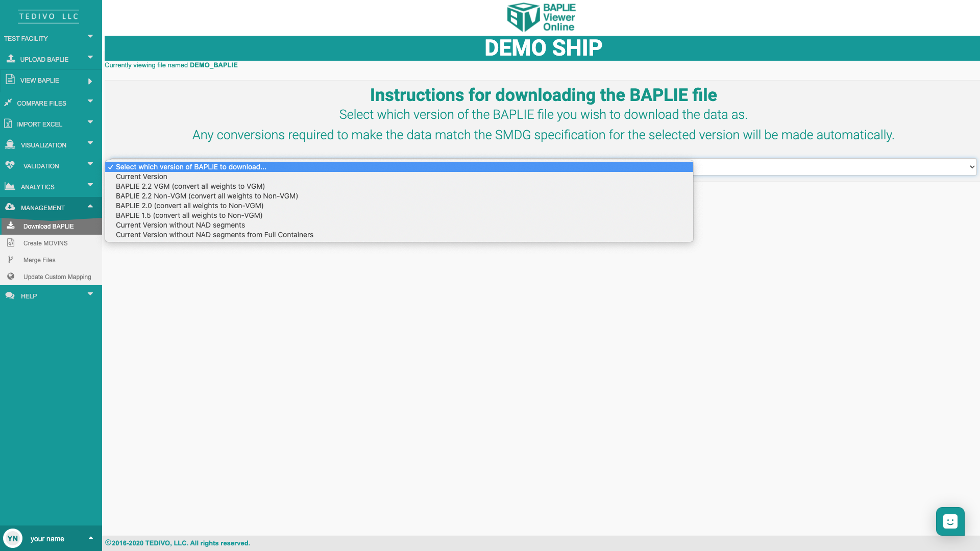 Note: The default system setting will automatically download all BAPLIE data as .txt files. If you wish to change this setting and download all BAPLIEs as .EDI file types, click here for more information.