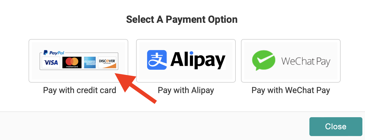 Once you click the "Pay Now" button, a form opens where you can select "Pay with Credit Card". Once you select this option, you will be taken to SquareUp to complete the purchase.