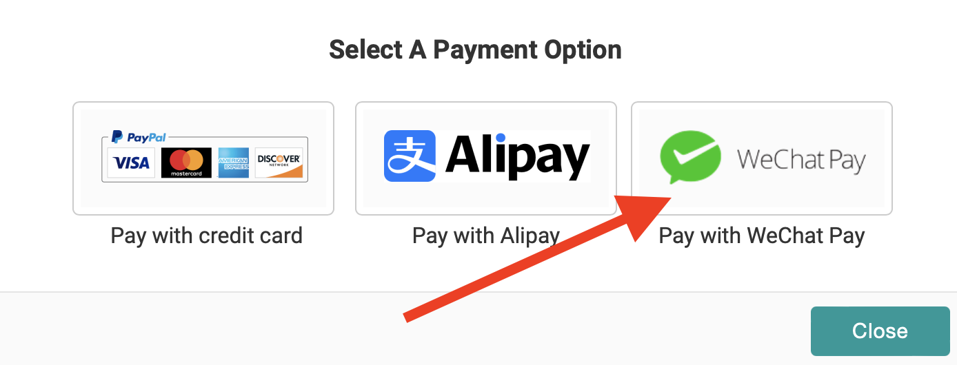 In addition to paying with a Credit Card, we also offer additional payment methods such as WeChat Pay.