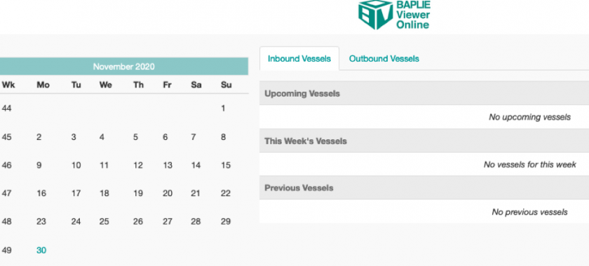 This calendar view allows the user to organize and manage all of the facility's BAPLIE files. A vessel schedule view makes it easy to see this week's ships, the ships that have previously called, and the ships that have yet to arrive.