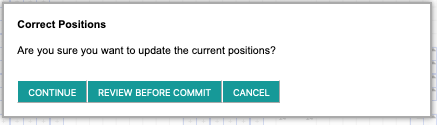 You will be asked to confirm the positions - if you wish to discard any changes press "cancel", if you wish to review them one last time, press "Review before commit" and if you would like to continue with the changes you have made press "continue"