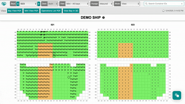 First, upload both Inbound and Outbound BAPLIE files to BAPLIE Viewer Online. Then open the Inbound BAPLIE file for viewing and select either the 2D or the 3D view. Files opened default as the Inbound Voyage.