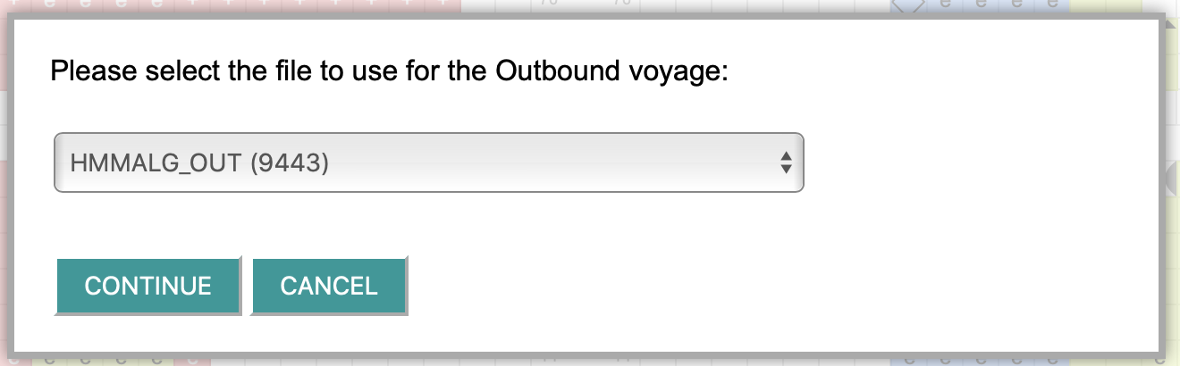 Select the file that has the outbound voyage data and click continue.