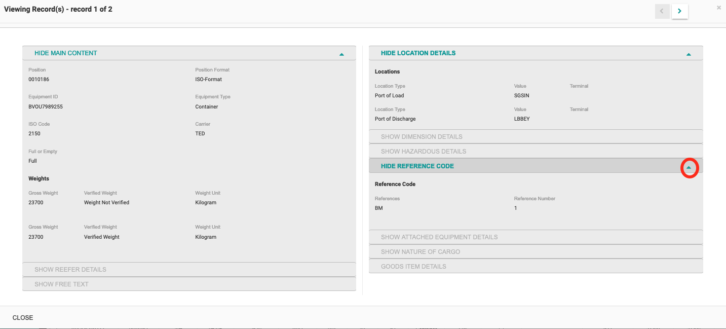 BAPLIE Viewer Online provides the ability to look at the entire BAPLIE data as a whole, or you can view a single container or individual record. You can also view multiple records or multiple containers.