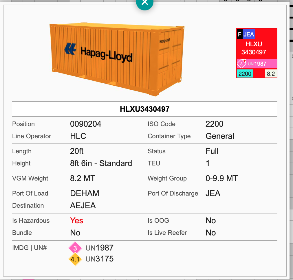 - Improved visibility of IMDG numbers and corresponding UN Numbers - within container info popup, and in the dashboard table view